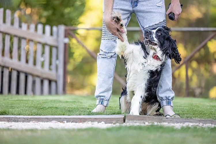 Later, I did some “walk and train” sessions with Ruby. The neighbours had demolished the house next door and were putting up new houses. The noise from site, especially the constant nail gun, was causing Ruby much distress while her pawrents were away at work.